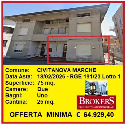 Per informazioni ed assistenza alla partecipazione in asta 392.5232893 – Brokers Immobiliare Civitanova Marche 0733.784307 – mail: brokersimmobiliare@gmail.com – www.brokersimmobiliare.it