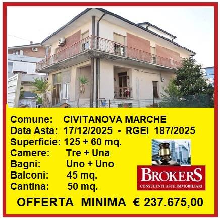 Per informazioni ed assistenza alla partecipazione in asta 392.5232893 – Brokers Immobiliare Civitanova Marche 0733.784307 – mail: brokersimmobiliare@gmail.com – www.brokersimmobiliare.it