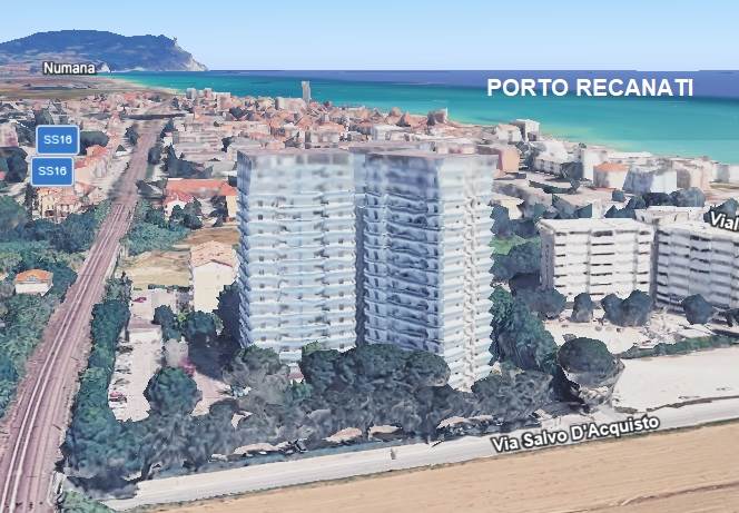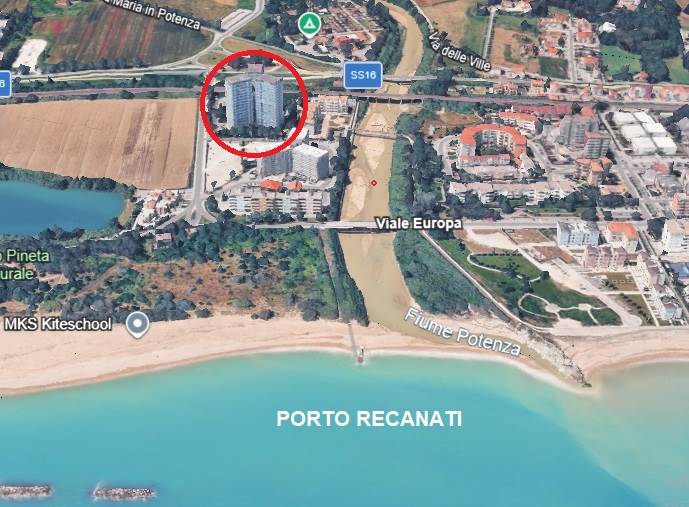 Porto Recanati: Il Tribunale di Macerata ha disposto la vendita per i diritti di piena proprietà su unità abitativa sita a Porto Recanati in Via S. d'Acquisto n. 6 , a soli 200 mt. dal mare. L'appartamento è posto al quinto piano di un edificio a torre recentemente ristrutturato con intervento di eco-bonus e con splendida vista mare. La superficie è di mq. 62 e balcone perimetrale di mq. 19, si compone di ingresso nel soggiorno-pranzo con angolo cottura, disimpegno notte, due camere e bagno. Ampia area esterna per parcheggio auto. A seguito dei recenti lavori che hanno interessato l'intero complesso, l'abitazione si trova in ottimo stato, pavimenti in gres porcellanato, infissi in pvc con doppi vetri, porte in legno chiaro laminato, cappotto termico, balconi con balaustra in vetro, ecc...