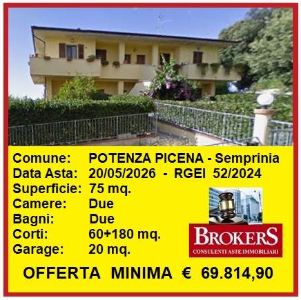 Per informazioni ed assistenza per la partecipazione in asta 392.5232893 – Brokers Immobiliare Civitanova Marche 0733.784307 – mail: brokersimmobiliare@gmail.com – www.brokersimmobiliare.it