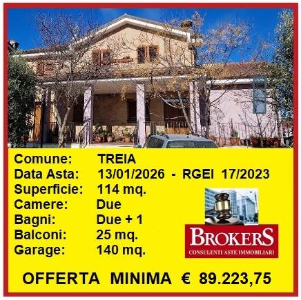 Treia: Il Tribunale di Macerata ha disposto la vendita per i diritti di piena proprietà di unità immobiliari site nel comune di Treia in Via Santissimo Crocifisso. Oggetto di vendita è un appartamento di recente costruzione, con ingresso indipendente della superficie di mq. 114 con un porticato di mq. 27 e balconi per mq. 25, oltre ad un garage di mq. 140. Esternamente il fabbricato si presenta parte con mattoni faccia vista e parte con intonacato tinteggiato, il tutto in ottime condizioni. L'abitazione è composta da ingresso in ampio soggiorno doppio, cucina abitabile, zona notte con due camere matrimoniali, con possibilità di ricavarne una terza e due bagni, di cui uno esclusivo alla camera principale. Con scala interna si accede all'ampio garage sottostante munito anche di porta carrabile automatizzata, completamente rifinito e con locali destinati a bagno-lavanderia e cucina di servizio. Ottime le condizioni, pavimenti in gres porcellanato, riscaldamenti radianti a pavimento, infissi in legno con vetro termico, ecc... Immobile da considerarsi libero. Procedura n. 17/2023.