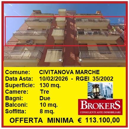 Per informazioni ed assistenza per la partecipazione in asta 392.5232893 – Brokers Immobiliare Civitanova Marche 0733.784307 – mail: brokersimmobiliare@gmail.com – www.brokersimmobiliare.it