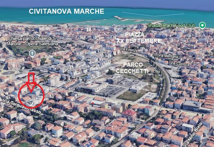 Civitanova Marche: Il Tribunale di Macerata ha disposto la vendita in asta per i diritti di piena proprietà di intero stabile con corte, sito a Civitanova Marche in Via Tassoni, nel quartiere San Marone. L’immobile, disposto su tre livelli, ha una scala che consente l'accesso ai vari piani: il piano sottostrada con destinazione cantina di circa mq. 50 è completamente rifinito; il piano terra di mq. 60 circa, catastalmente garage, ma è di fatto trasformato in un appartamento bilocale; il piano primo grande appartamento di mq. 125 circa, composto da un ampio soggiorno, una cucina, due camere matrimoniali, una camera singola ed un bagno, oltre a tutto un balcone perimetrale di mq. 45 circa; il piano secondo soffitta allo stato grezzo di mq. 125. Le finiture interne dell'abitazione sono di buona qualità, con pavimenti in marmo e granito, bagno in ceramica, serramenti in alluminio con doppio vetro, porte in legno, dotazioni impiantistiche complete.
