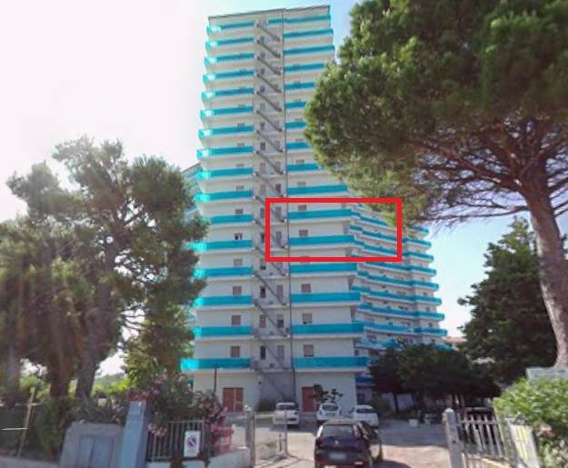 Porto Recanati: Il Tribunale di Macerata ha disposto la vendita per i diritti di piena proprietà su unità abitativa sita a Porto Recanati in Via S. d'Acquisto n. 6 , a soli 200 mt. dal mare. L'appartamento è posto al quinto piano di un edificio a torre recentemente ristrutturato con intervento di eco-bonus e con splendida vista mare. La superficie è di mq. 62 e balcone perimetrale di mq. 19, si compone di ingresso nel soggiorno-pranzo con angolo cottura, disimpegno notte, due camere e bagno. Ampia area esterna per parcheggio auto. A seguito dei recenti lavori che hanno interessato l'intero complesso, l'abitazione si trova in ottimo stato, pavimenti in gres porcellanato, infissi in pvc con doppi vetri, porte in legno chiaro laminato, cappotto termico, balconi con balaustra in vetro, ecc...